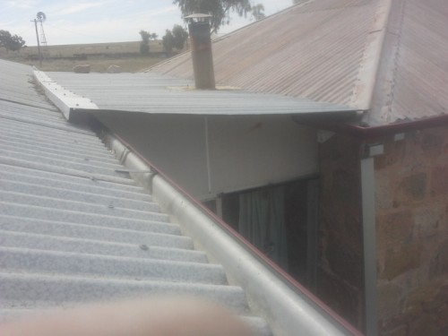 The main house is on the left and the kitchen is on the right.as they were known in the day as station houses. Yes you are correct the guttering does continue through the ceiling space.