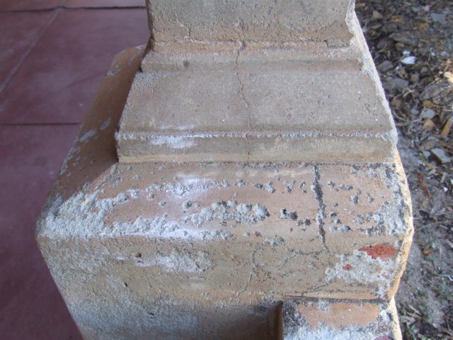 Luckily the new columns were a very close match to the existing columns. The new columns were in two pieces and wrapped around the tie down tube. They were joined and finished with a twp pack epoxy and held in place via a ratchet strap. The base was grouted in.